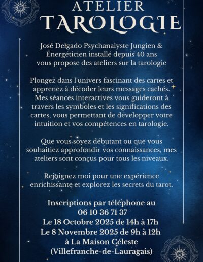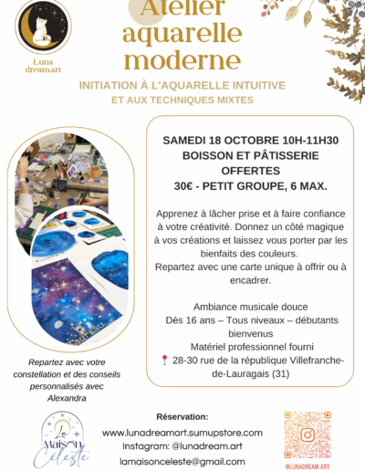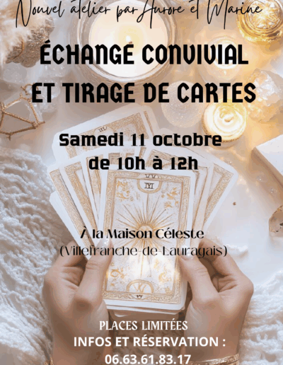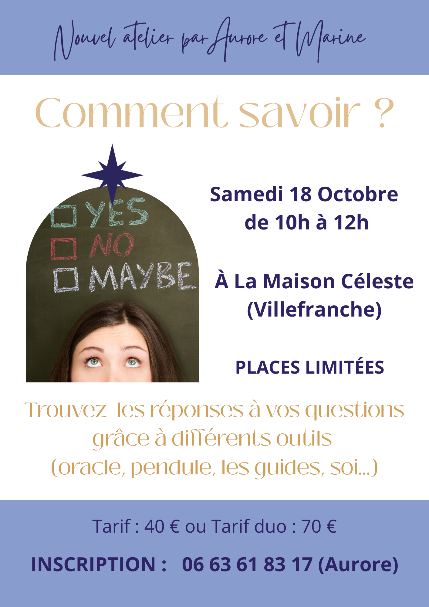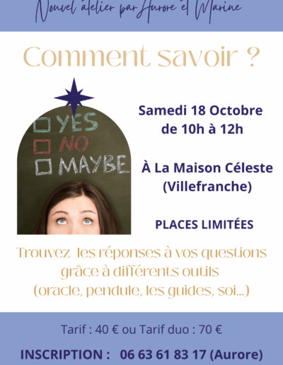 Découvrez les différents ateliers qui auront lieu à  La Maison Céleste :